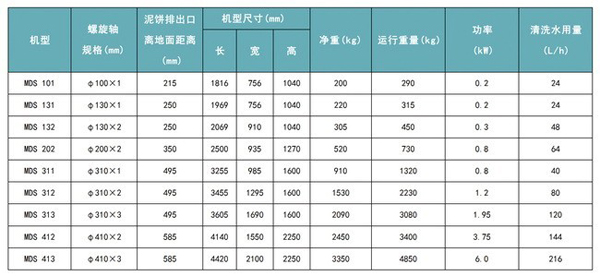 1) 疊螺污泥脫水機的絕干污泥處理量取決于疊螺主體的直徑和數量,機型用三個字母加三位數字來表示。其中字母MDS代表Multi-Disk Screw Press,即疊螺污泥脫水機的英文縮寫。數字的前兩位表示疊螺主體的直徑,后一位表示疊螺主體的數量,如MDS312表示疊螺主體直徑為310mm,主體數量為兩根。